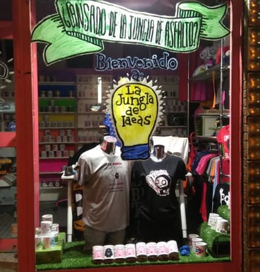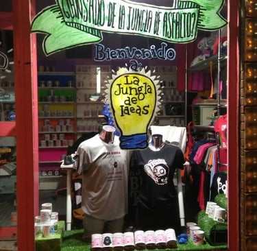 Colorida tienda de camisetas con diseños creativos e impresión personalizada